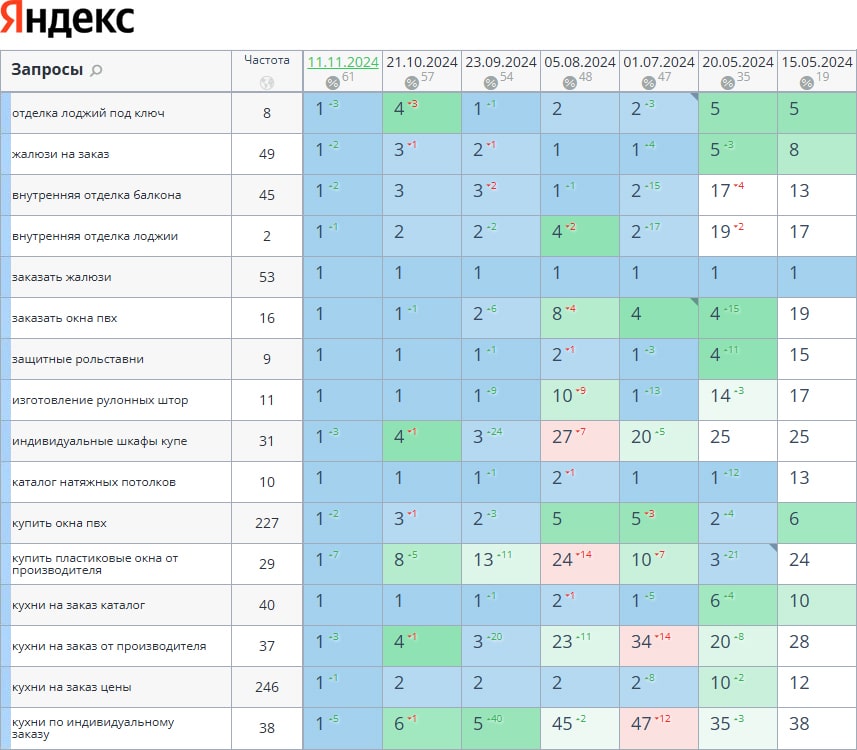 За время работы 62 запроса выведено в ТОП-3 и 95 запросов в ТОП-10.