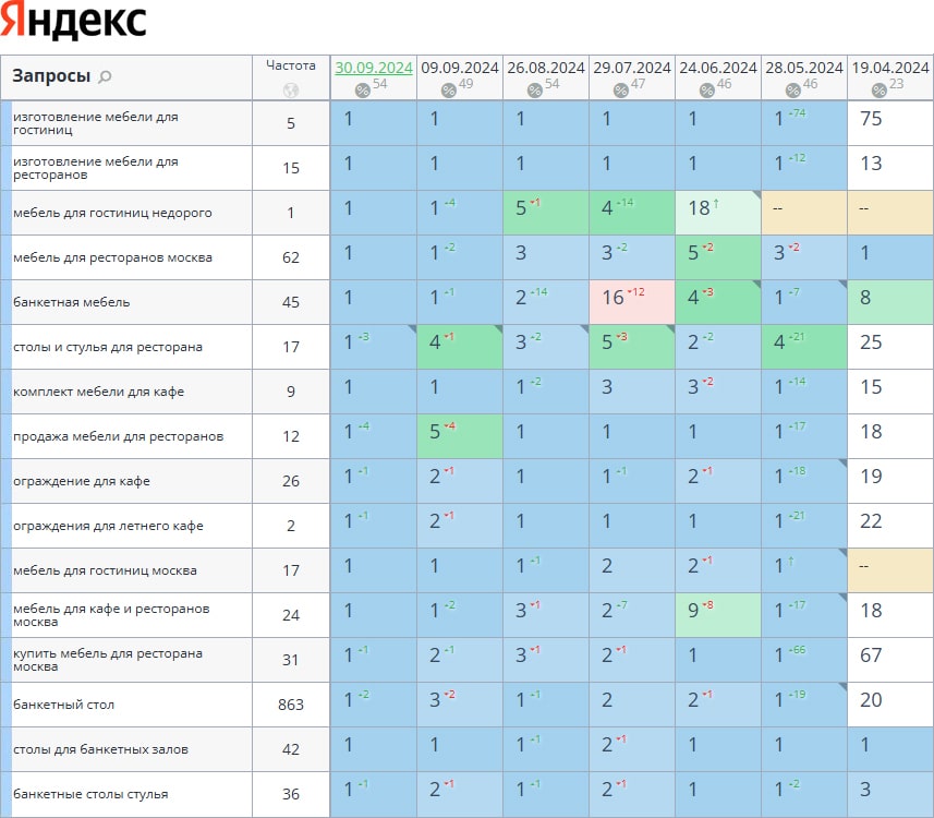 За время работы нам удалось поднять позиции с 26% до 54% в топ-10, с 6% до 40% в топ-3. И так будет с каждым проектом!