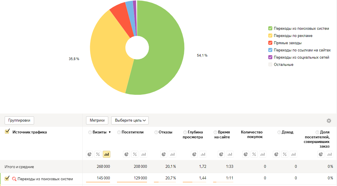 Переходы из поисковых систем за последний год составили 54,1%, что значит 145 000 визитов