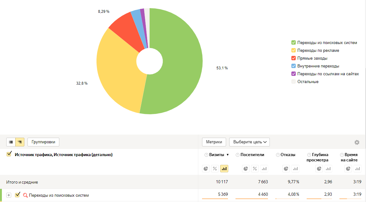 Переходы из поисковых систем за последний год составили 53,1%, что значит 5 369 визитов