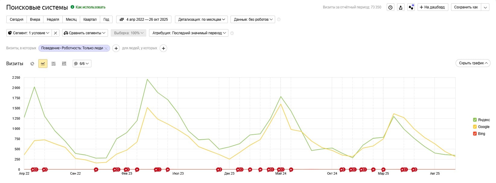Динамика трафика на сайт за всё время продвижения: