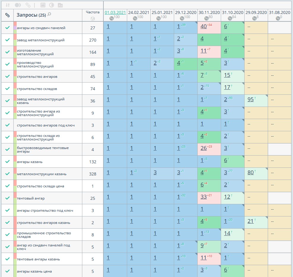 Динамика позиций сайта