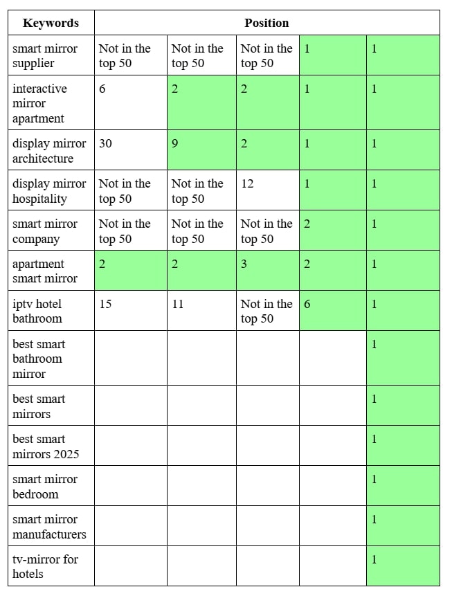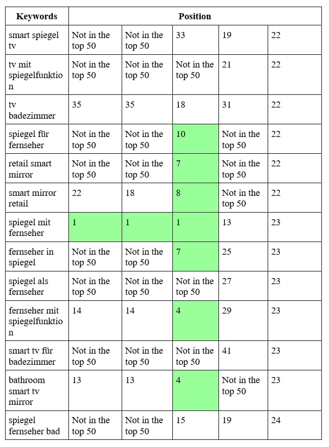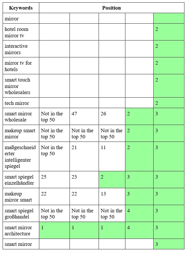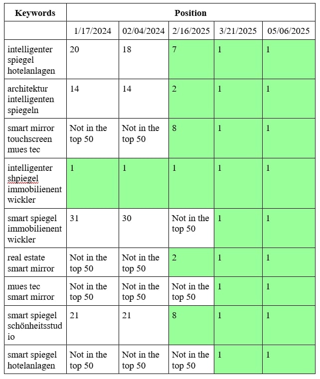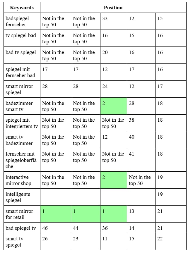 SEO продвижение сайта производителя умных зеркал в Германии