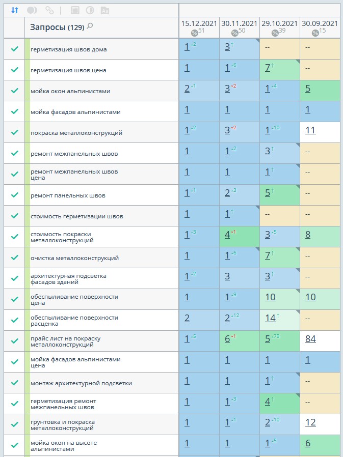 За время работы нам удалось поднять позиции с 15% до 71% в ТОП-10 с 5% до 61% в ТОП-3. Трафик увеличился на 72%, а количество заявок в 2 раза. И так будет с каждым проектом!