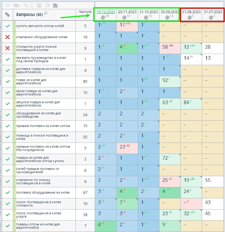 - Сбор запросов по темам: поиск поставщиков в Китае, запчасти из Китая, товары из Китая для маркетплейсов, оборудование из Китая и производство под своим брендом в Китае. Семантическое ядро собиралось, чтобы выстроить четкую структуру для нового сайта: