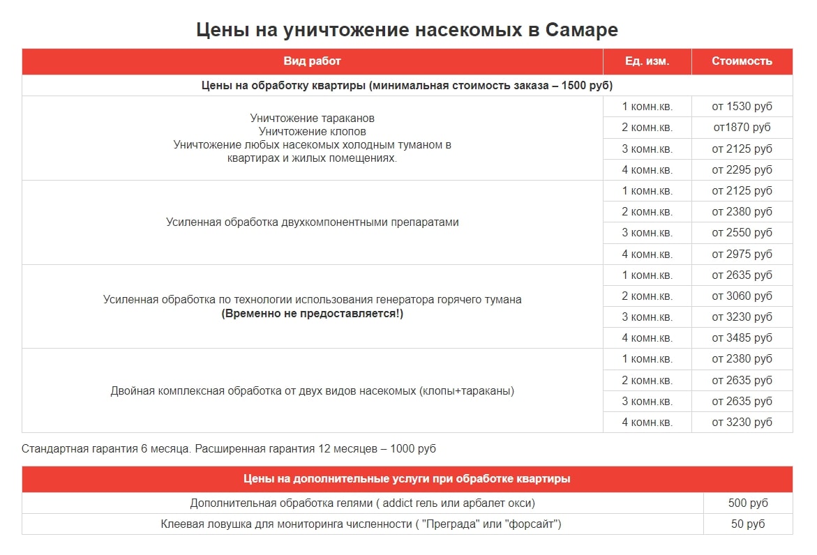 1. Разместили цены на каждой странице услуг.